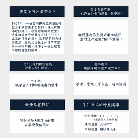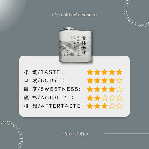 分不清這是咖啡還是茶?普洱咖啡入口後前段帶有小許芒果的干香,微微的酸甜感,中段帶有紅酒般的單寧香氣,尾韻是熟普洱茶的茶香與溫潤。